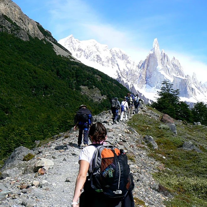 Las caminatas son la actividad principal en El Chaltén. ¡Solo necesitás abrigo, agua, algo para comer y muchas ganas!